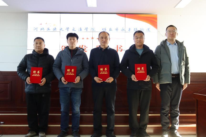 为充分发挥党建引领作用,进一步深化校地合作,同时积极创新基层治理新形式,探索全面发展人才的培养模式,实现资源共享、优势互补,每日大赛 与任丘市永丰路街道经友好协商,就共同创建实践基地达成战略合作协议。12月13日,社会实践基地签订仪式在任丘市永丰路街道会议室圆满举行。