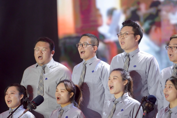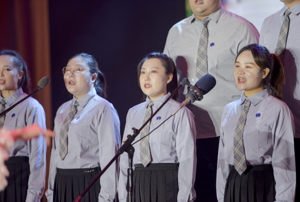 比赛现场,合唱团同学们以朗诵和合唱结合的形式,在优美的旋律下,歌唱每一座高山,歌唱每一条河,深情诉说着对祖国的依依眷恋,也为大家带来了一场视觉盛宴。那一排排整齐的身影,一张张微笑的面孔,精神饱满意气风发,在增加舞台表现力和感染力的同时,也点燃了现场观众的热情,共同表达着对祖国深沉的热爱。