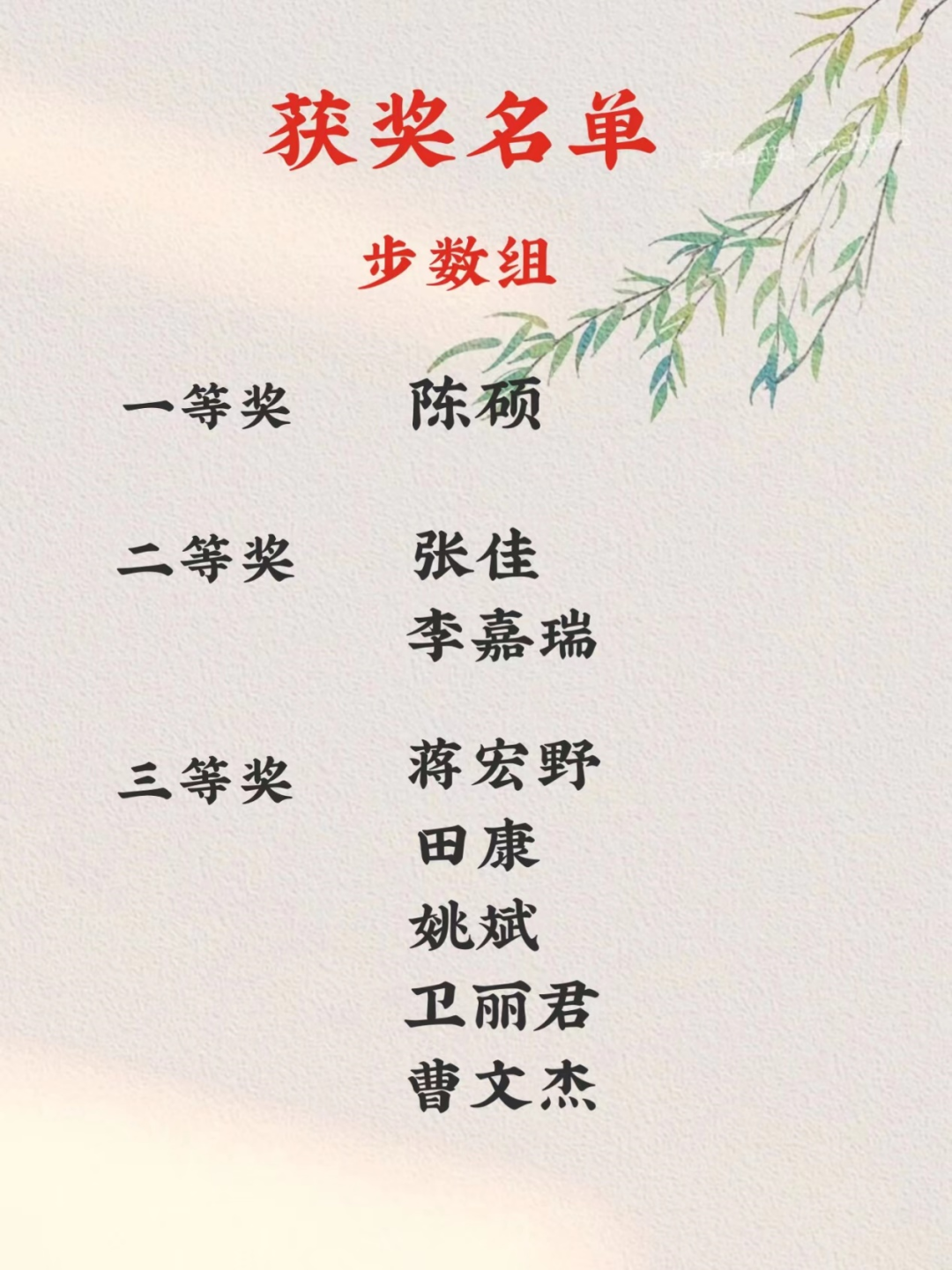 “与河共健”活动期间,同学们热情高涨,展现出文法学子蓬勃向上的精神面貌。活动分为步数组和千卡组,活动结束后通过后台数据汇总,步数组共评选出一等奖1名,二等奖2名,三等奖5名,参与奖8名;千卡组共评选出一等奖1名,二等奖1名,参与奖1名,具体获奖名单如下:
