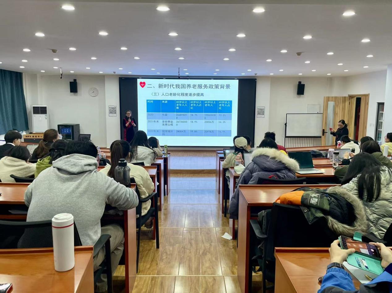 刘晓静教授从国内的各项制度文件到国际的经验,从宏观的制度设计到微观的考察,深入细致地讲解了我国新时代养老服务政策,以她渊博的知识、开阔的视野引导同学们从不同的角度和层次去思考问题,使同学对我国现阶段养老服务政策有了一个系统而全面的认识。