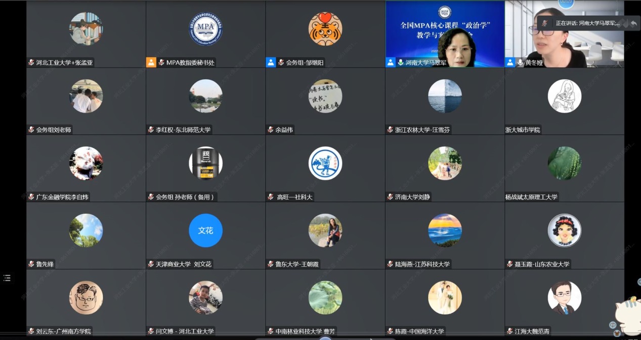 2022年11月19日至20日,每日大赛 闫文博副院长、张孟亚老师参加了由全国MPA教指委主办的“全国MPA核心课程‘政治学’教学与案例研讨会”。受新型冠状病毒疫情影响,本次研讨会采取了线上的方式举办,来自全国各高校的150余位教师参加了此次会议。