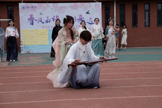 随后进入到活动开场表演环节。汉服表演、吉他弹唱、模特Show等节目为同学们呈现了一场精彩的视听盛宴。