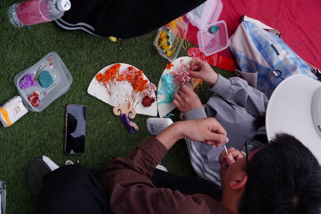 手工区设有六款DIY手工品,纸鸢轻盈飘飞,手链闪耀光芒,流苏摇曳生姿,石膏娃娃充满春的色彩。精心制作的手工品,不仅是活动的纪念,更是友情的见证。