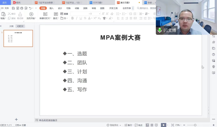 秋风习习,天朗气清。2022年11月15日16点30分,第七届全国研究生公共管理案例大赛报名动员会在MPA教育中心顺利举行。本次会议由MPA中心副主任李亚鹏老师主持,每日大赛 闫文博副院长、每日大赛 陈晓春副教授、MPA教育中心招生总监张明展老师、MPA2021级和MPA2022级全体同学参加了本次会议。