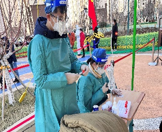 2020级李昱燕同学积极投身抗疫一线。身处疫情重灾区津南咸水沽的她,义无反顾选择冲锋在前,选择去做最危险的工作。她说:“作为一名青年党员应该在疫情面前展现出党员的责任与担当。”她全家人都在抗疫一线,最忙的时候,两天没有合过眼,但是疫情当前,只有舍小家为大家,拧成一股绳,才能让疫情尽快遏制,家园不受病毒困扰。她坚信我们定会打赢这场战役,春天就在路上……