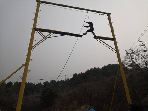 稍作休整后,开始下午的拓展活动。下午的训练分为高空和地面两类,两队在做完热身活动后,分别进行。在高空训练当中,学员挑战自我,突破心理防线,全员顺利完成;在地面训练中,学员齐心协力,合理分工,最终同样顺利达成目标。这一过程虽然不易,但却也收获颇丰。在下午的拓展结束后,学员前去就餐休息,晚上自由活动。