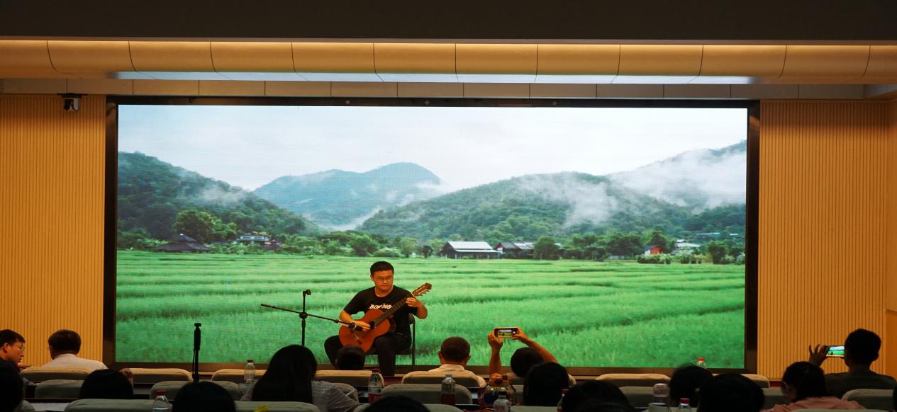 2023级法律(法学)专业牛遂志带来的吉他独奏《风之丘》,曲声婉转悠扬,像一道温柔的清风吹过心间。