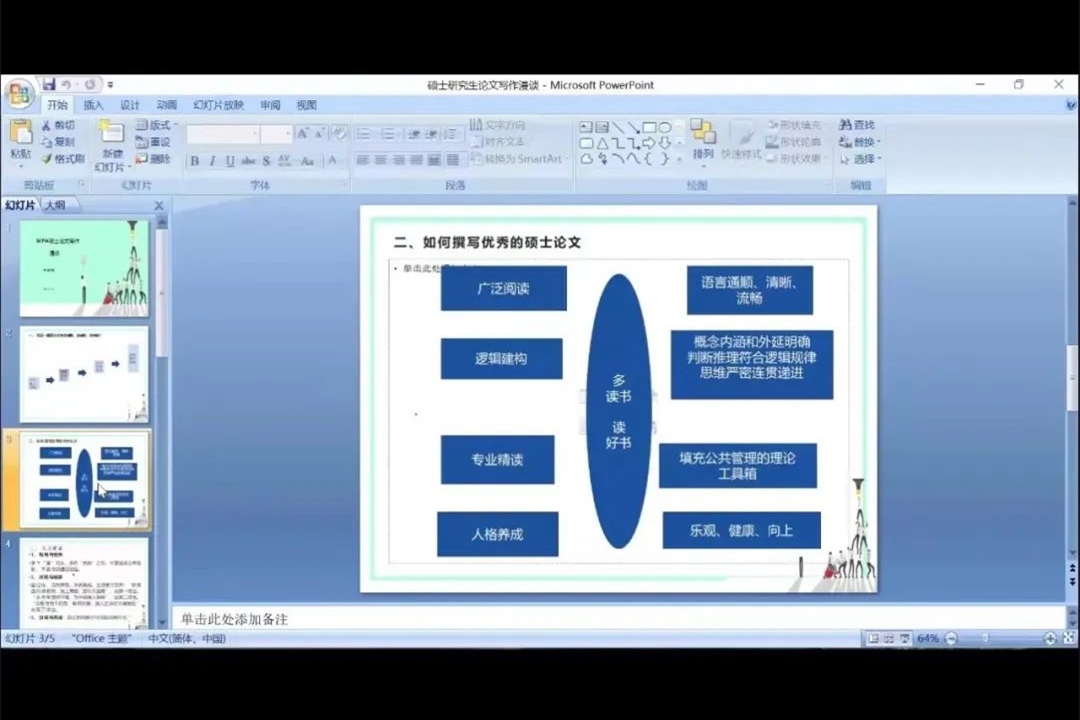 其次,李教授向同学们强调“多读书,读好书”。优秀硕士论文的撰写要广泛阅读,保证语言清晰、流畅;加强逻辑构建,确保思维严密连贯;要专业精读,加强理论知识;做到人格养成,保持乐观、健康、积极心态。