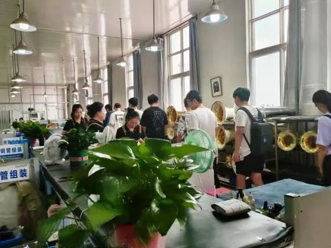 厂区共分为管乐器加工区和弦乐器加工区两部分。整个车间做到了生产透明、整洁有序,在加工车间的参观过程中,同学们积极提问、认真配合,在不打扰工人们工作的同时拍照记录、学习走访。