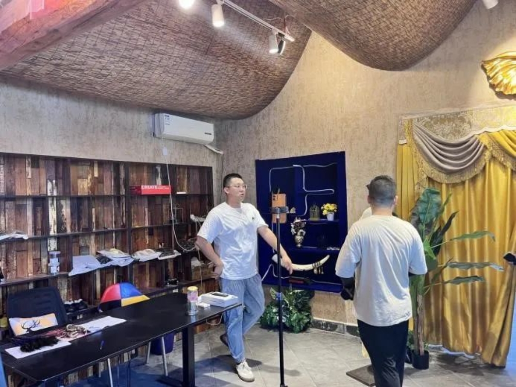 下午,实践团队参与了大厂融媒体的采访和本校的拍摄活动,亲身体会到了小厂村特色的线上民族服饰直播间的工作,感受到了小厂村为致富振兴所付出的努力。