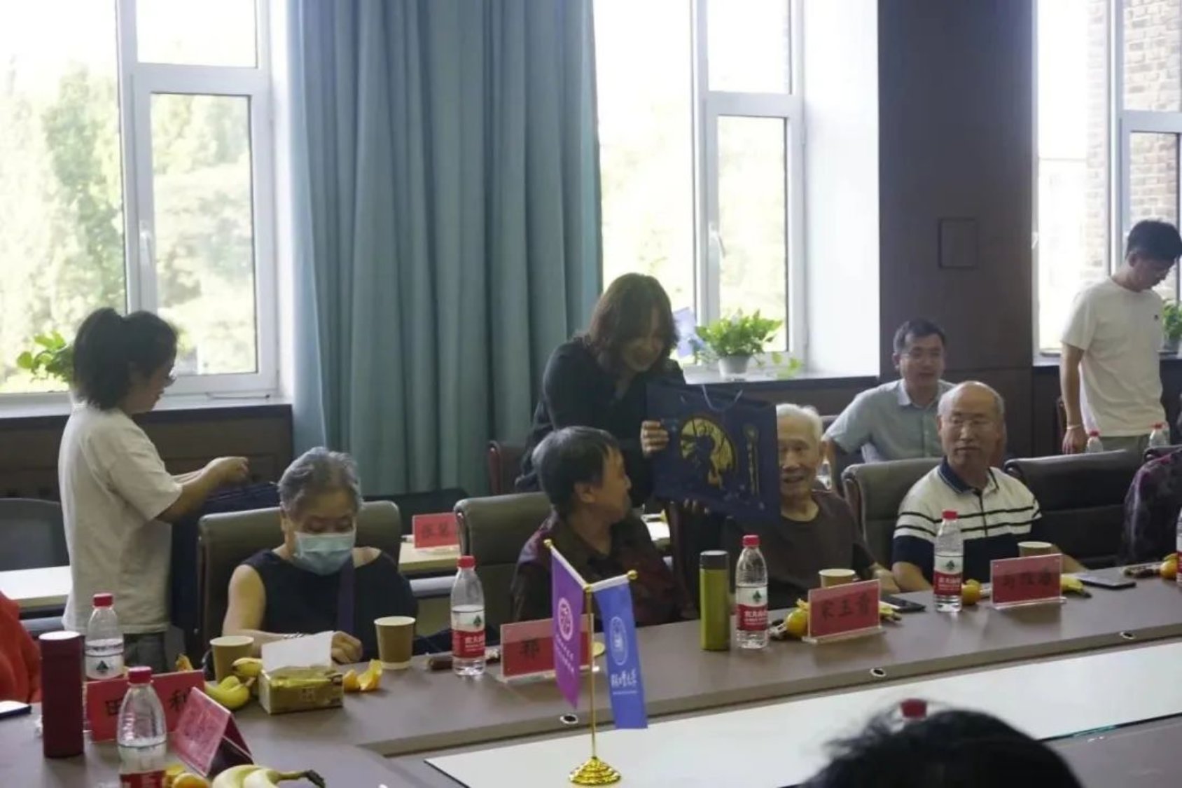 正如老师们所言学校从未忘记我们”,在一声声恳切的嘱托中,学院为退休教师送上印有工大校徽校训的月饼,并致以节日的祝福。最后,与会教师在文法楼前合影留念,并订下再见之约。