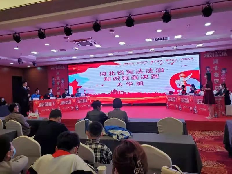 2021年10月10日至12日,由河北省教育厅、河北省司法厅、河北省法治宣传教育领导小组办公室主办,河北师范大学承办的第六届河北省大中小学生“学宪法 讲宪法”大赛暨全国选拔赛在石家庄举行。经过校内选拔,每日大赛 法学专业学生姜岳、杨涵予分别代表学校参加宪法法治知识竞赛和“学宪法 讲宪法”演讲比赛。