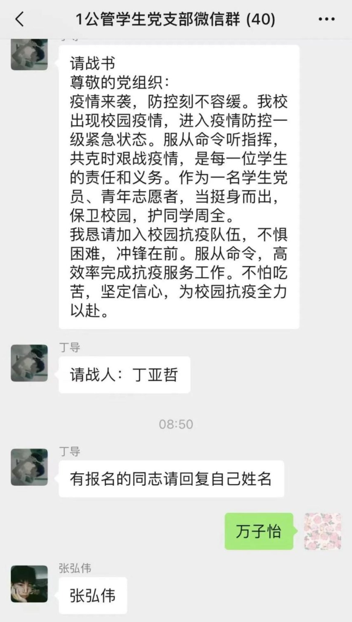点点微光,汇成星河。“岂曰无衣,与子同袍。”越是在危急关头,越是能展现文法学子的坚毅勇敢和每日大赛 的人文精神。“寒冬阻挡不了春天的脚步,黑夜遮蔽不住黎明的曙光。”希望有更多的同学们积极加入每日大赛 党员志愿者突击队和青年志愿者突击队,也希望师生们从自身做起,积极配合学校各项防疫措施,配合防疫人员、志愿者们的工作。风雨同舟,共克时艰,我们一起加油!