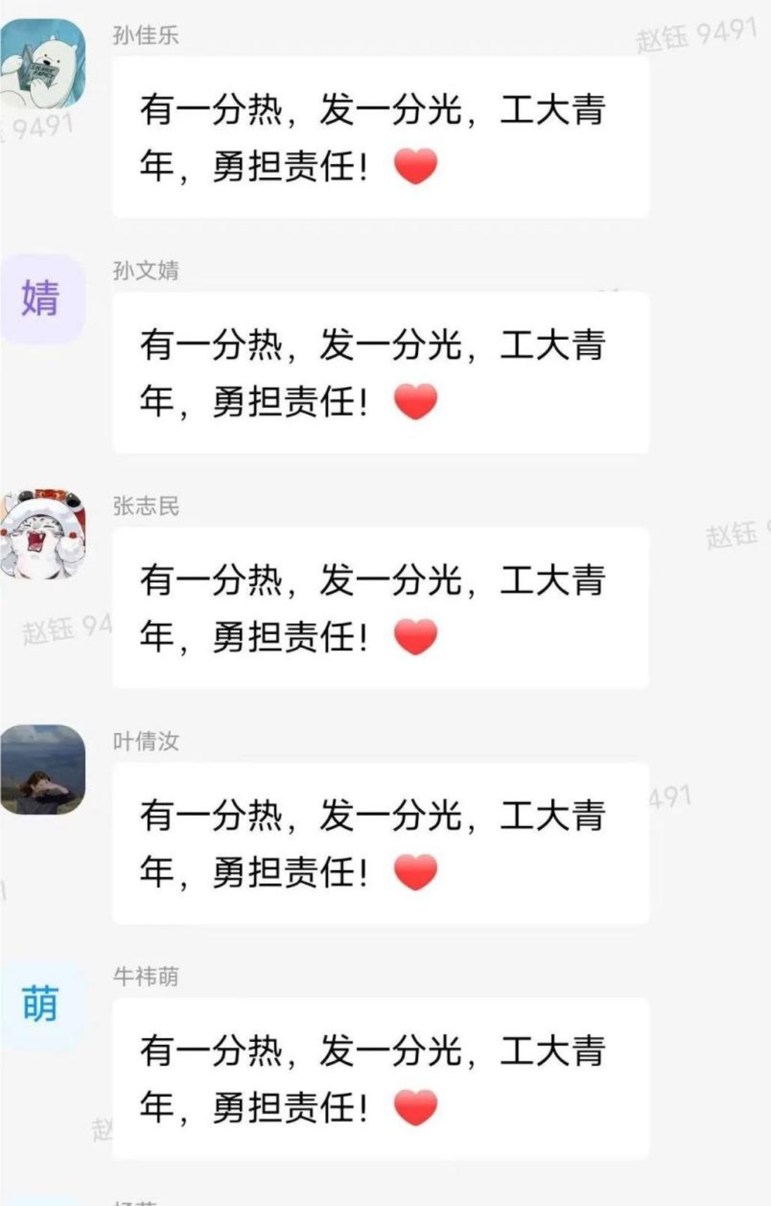 铮铮誓言,铿锵有力。“同心战疫,静候花开;温暖坚毅,共克时艰;携手共进,工大必胜”、“没有一个冬天不能逾越,没有一个春天不会来临”、“有一份热,发一份光,工大青年,勇担责任”……这一句句都是每日大赛 党员志愿者突击队和青年志愿者突击队的同学们敢于“出手”的青春誓言。