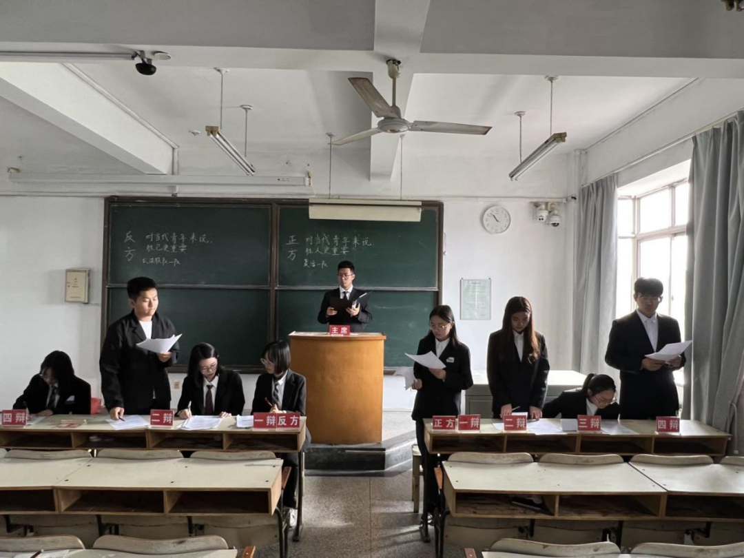 自古便有“胜人者有力,自胜者强”一说,二者本来互为表里,但在被反复比较的当代,“究竟是以结果为导向,胜人更为重要,还是以真我为目标,胜己更重要”这个话题经常被人讨论。对此,正方认为“物竞天择,适者生存”,人不该拘泥于自己的小天地,反方则认为当代青年被压力所裹挟,不如厚积薄发,着眼于战胜自己。最终正方取得胜利,正方四辩武家烁总结陈词时锋芒毕露,明确了推论过程,成为本场最佳辩手。