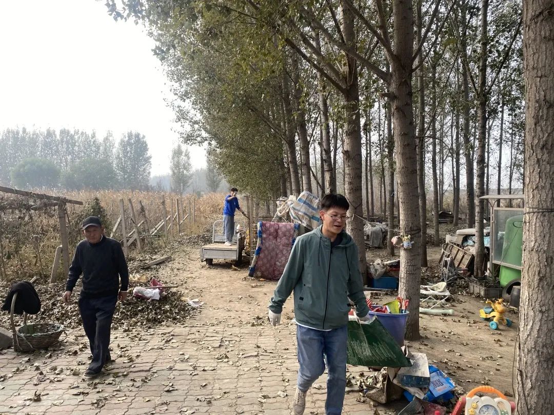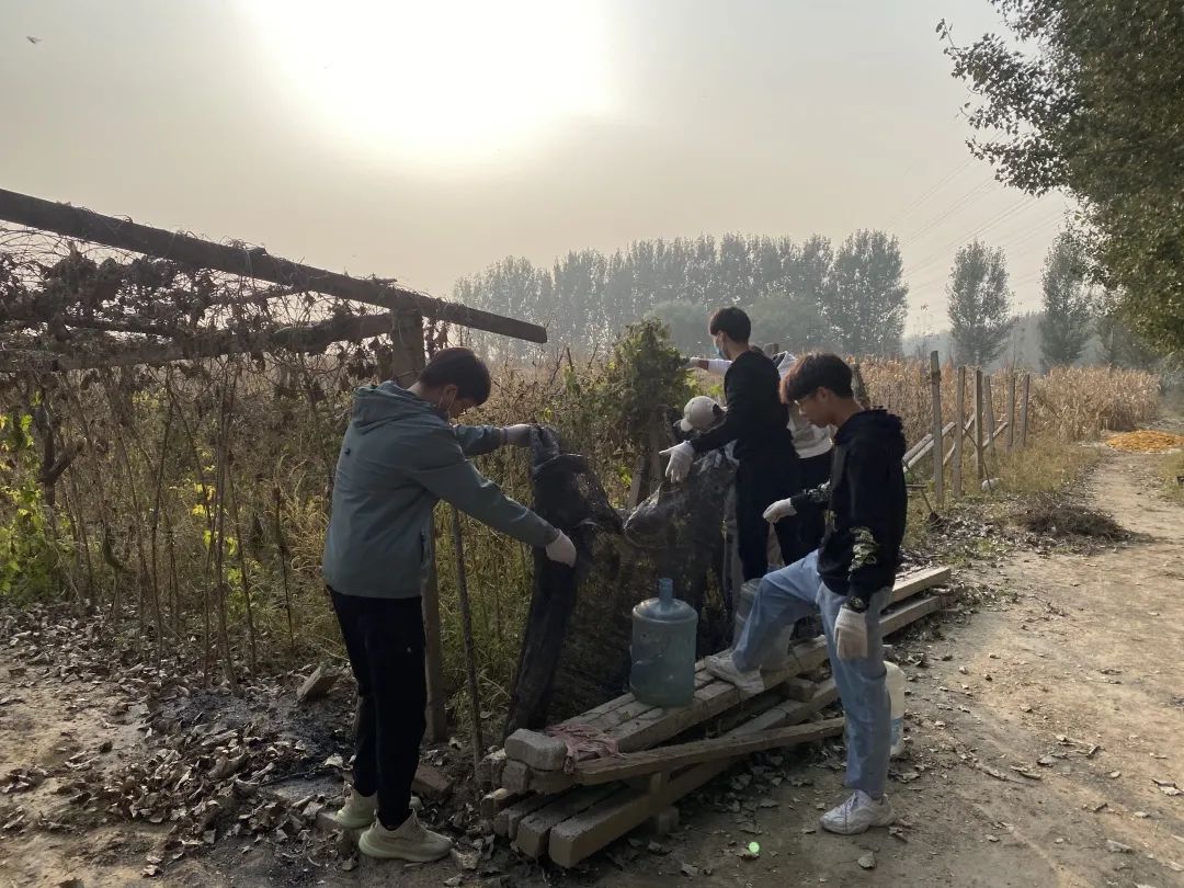 “秋风起兮白云飞,草木黄落兮雁南归。”秋天带走了最后一丝绿意,黄叶悄然落下。同学们带着似火的热情,伴随着飞舞的落叶,将它们会聚成一堆的小山。文法学子们整理院内杂物,为孩子们提供一片整洁的活动区域。