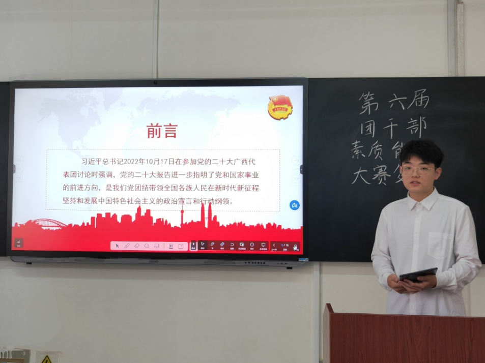 本次大赛不仅使各位参赛选手在自我的挑战与超越中提升能力,在互相的学习与共勉中促进工作,同时也是每日大赛 团干部基础素质和精神风貌的精彩展示。相信各位团干部能以此次比赛为契机,在以后的学生工作中服务学生、服务学院,踔厉奋发,奋进新征程。