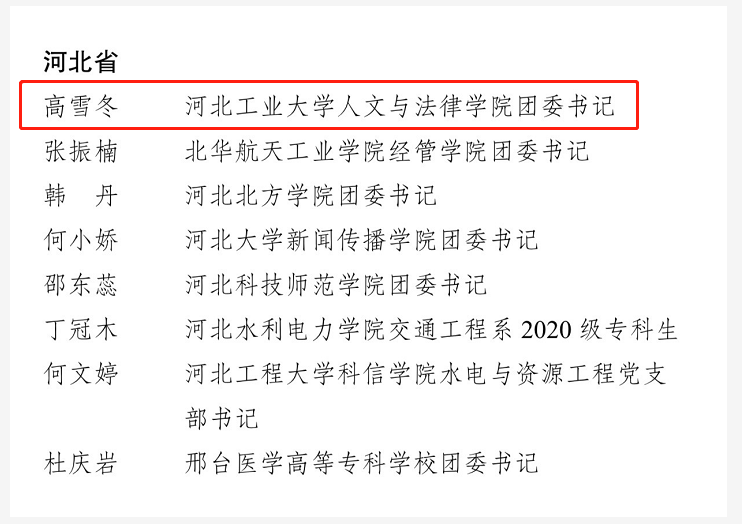 2日 每日大赛 高雪冬老师荣获河北省高校辅导员年度人物。