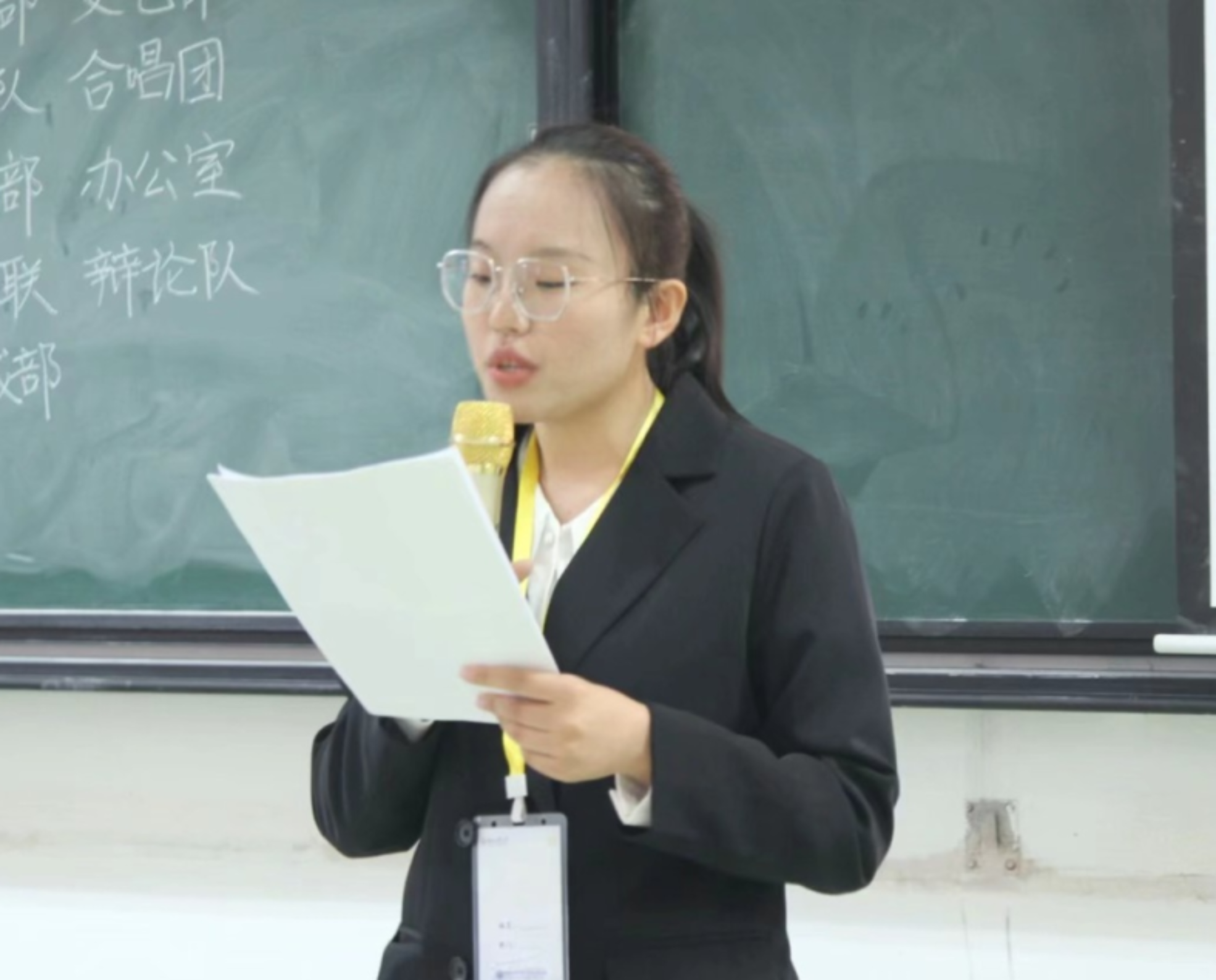路嘉欣主席回顾了自己之前的学生组织工作经历,在工作中收获和成长。最后希望大家能够在未来不断进步,发掘个人的特长和技能,享受一个充实而又快乐的大学生活。