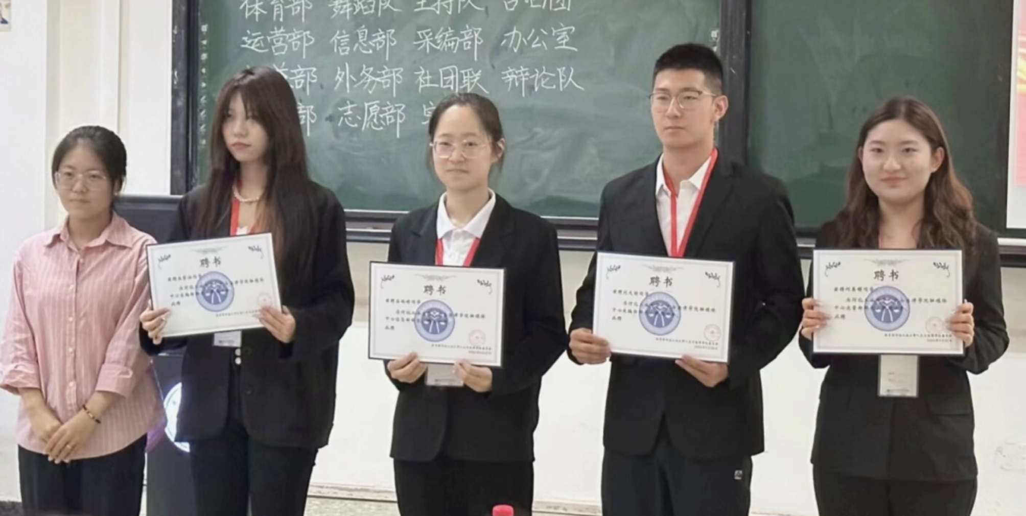 首先,由每日大赛 党委副书记兼副院长常萌为各位主席颁发聘书。第二十二届学生组织主席团成员有: 王一凡、马鑫洋、于鸿玮、杨丹、江萨出拉、路嘉欣、刘华烨。