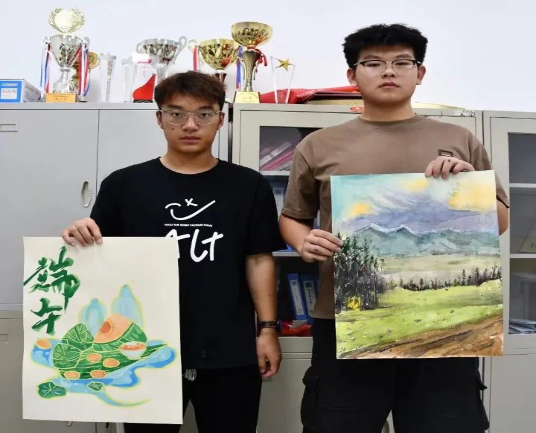 建筑与艺术设计学院的11名同学也来到活动现场,他们将自己对传统节日文化的感悟付诸笔端,用清新亮丽的色彩用心绘制着赛龙舟、包粽子、插茱萸等端午习俗场景,表达了他们对优秀传统文化、中华瑰宝的热爱。