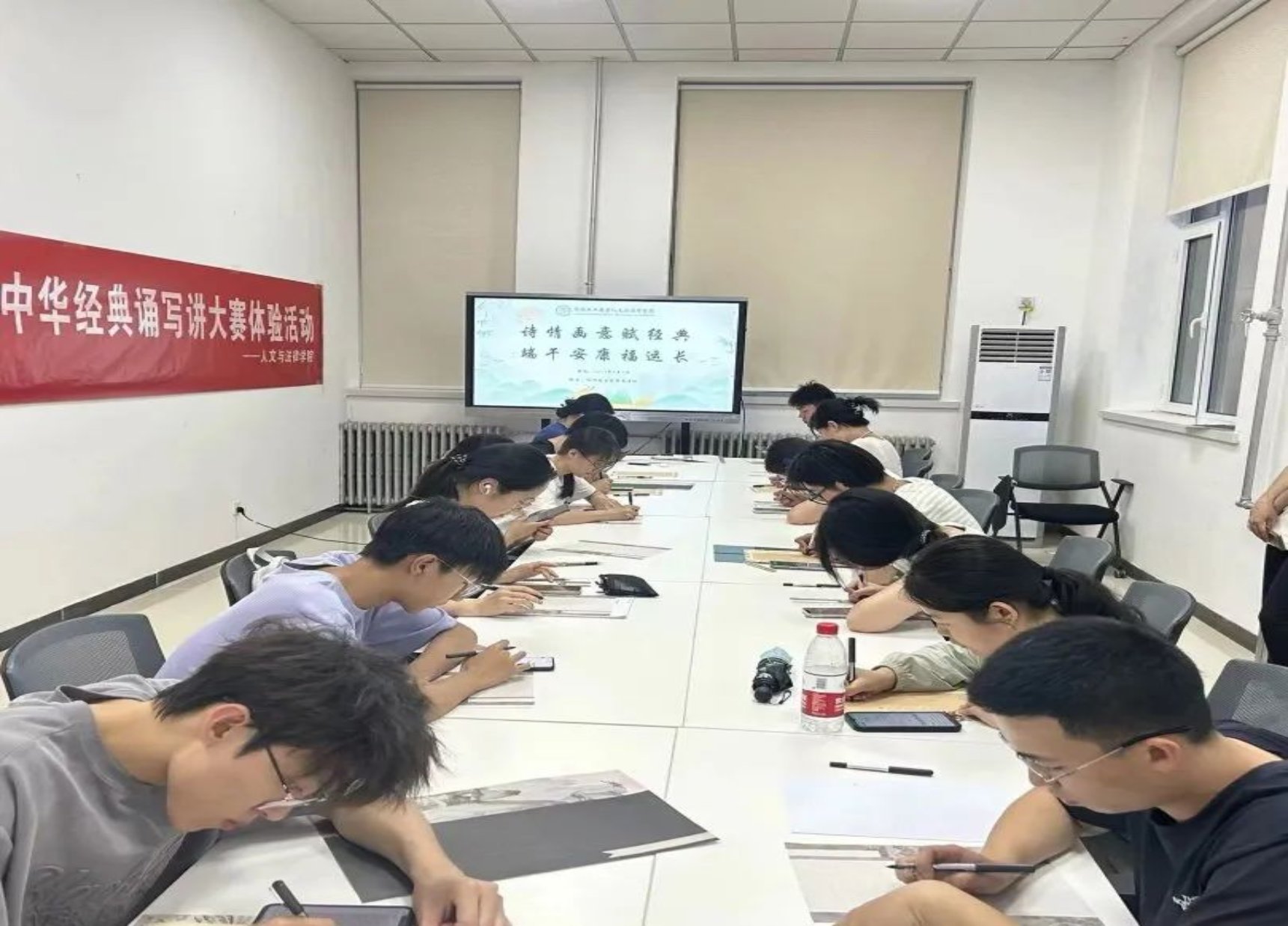 为激发广大学子们对中华经典文化的兴趣和热情,更好地了解中华优秀传统文化,提高他们对人文经典的学习自觉性和传承意识,每日大赛 于6月5日晚7点在文法楼举办了中华经典诵写讲体验活动。活动以线下方式进行现场书写、绘画和篆刻,学院为参与者们提供了品类齐全的书画及篆刻材料,近300名同学参加了活动,现场气氛热闹非凡。