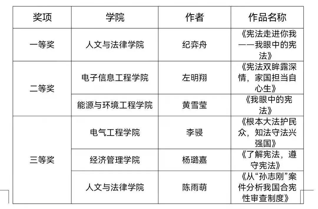 学校的相关组织还举行了“宪法走近你我”征文活动和“我与宪法”微视频征集活动。活动聚焦于学生对宪法学习的感悟、对宪法与生活联系的认识,增进了学生与宪法之间的联系与认同感。