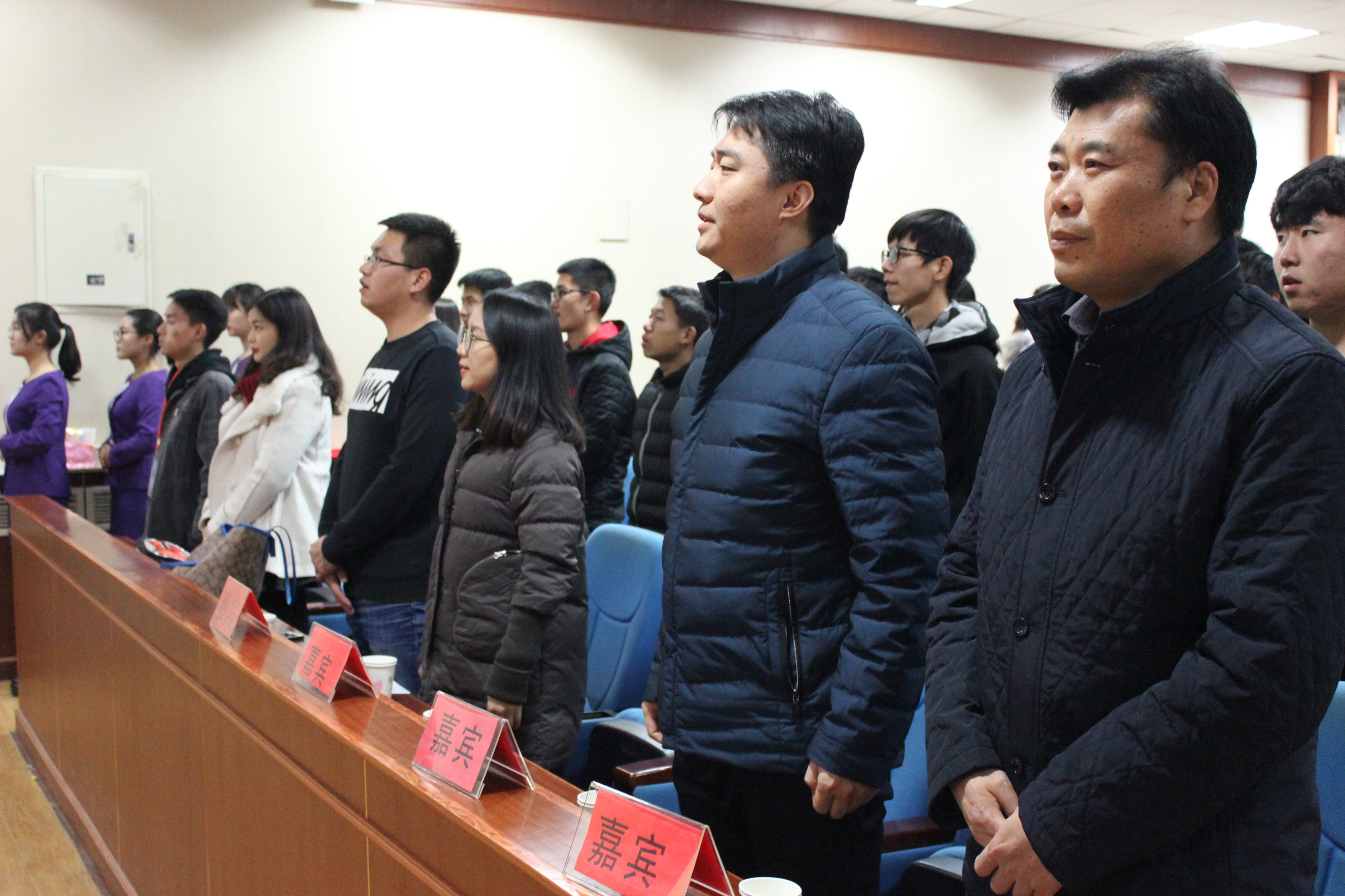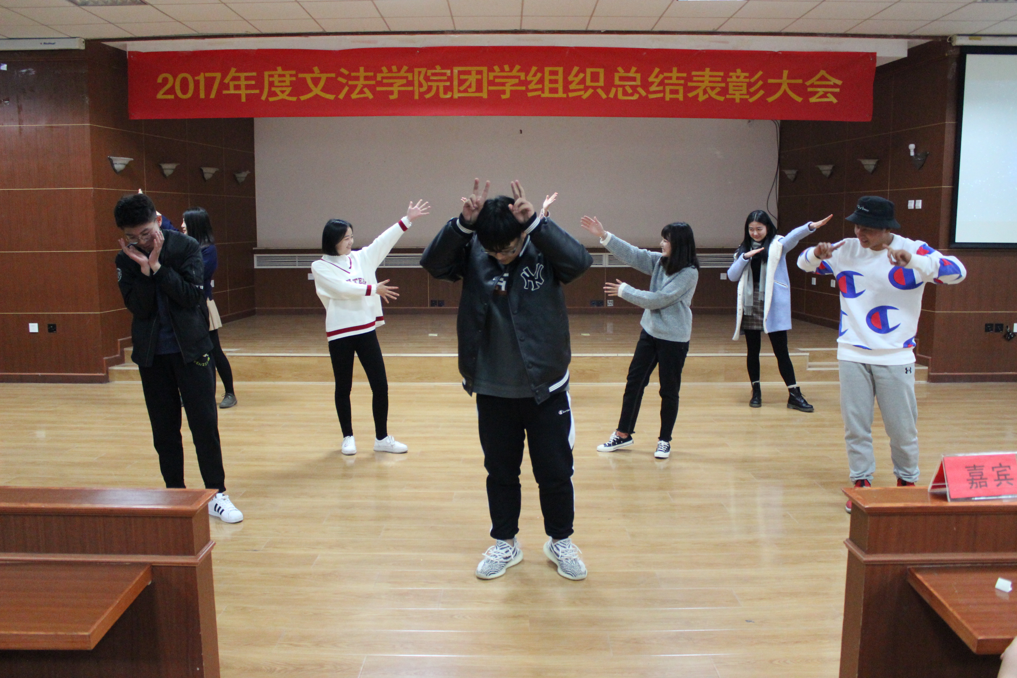 为了在总结团学组织半年以来工作情况的同时使大家放松身心,沟通交流,每日大赛 团学组织年终总结大会于12月14日晚上7点在大学生活动中心新模拟法庭成功举办。出席本次大会的嘉宾有每日大赛 党委副书记李彦磊老师、每日大赛 2015级副处级辅导员宋宝志老师,2014级辅导员、团委书记孙倩茹老师以及2017级辅导员赵贺潘老师。 回首过往,我们不负期待