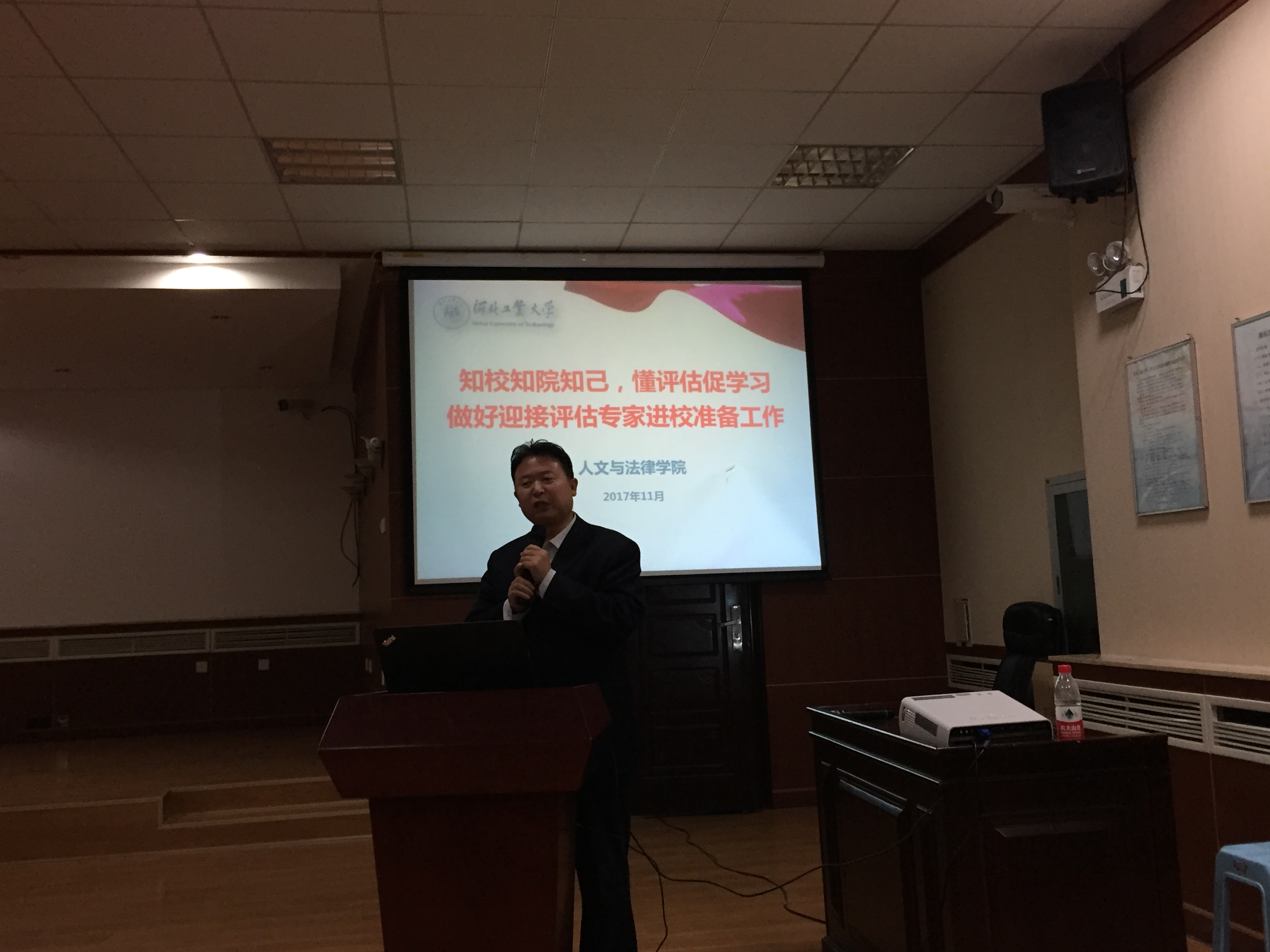 2017年11月6日,学院召开迎接本科教学审核评估动员大会,会议由学院党委书记白彦刚同志主持召开,院长李子彪、副书记李彦磊、副院长马立民以及各年级辅导员全员参加,同时参加会议的还有各年级主要学生干部及院学生会的主席和各部部长总计135人。