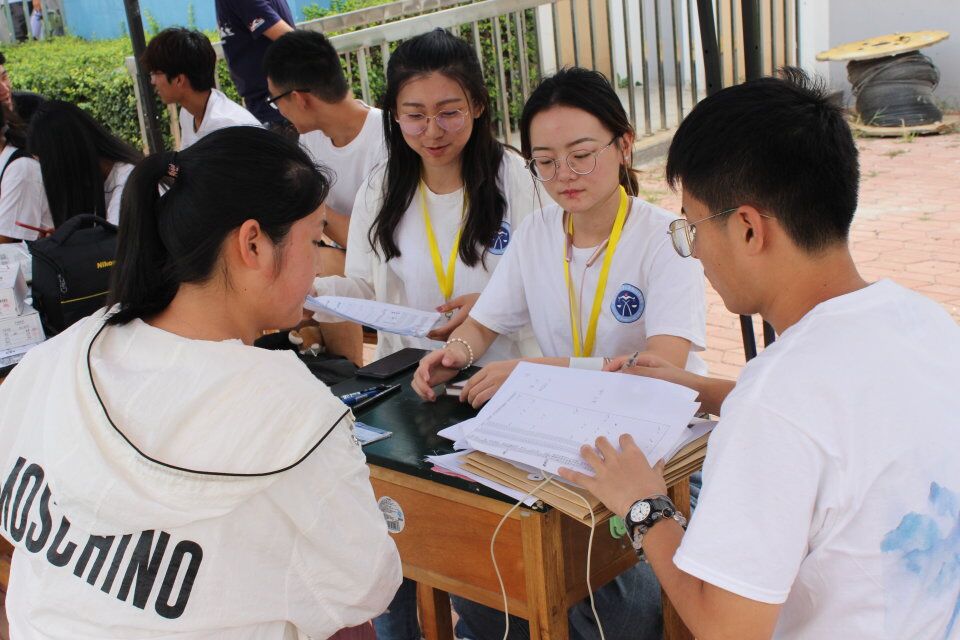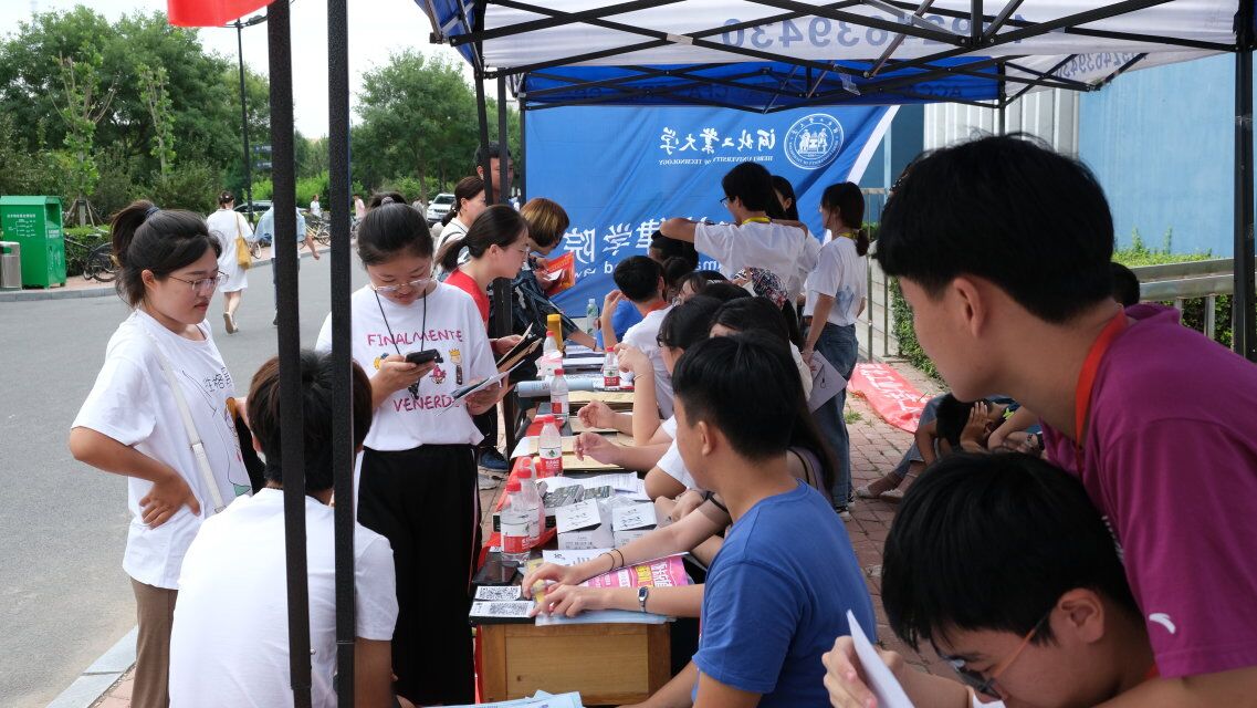 经过漫长的暑假,在余热犹存,秋意初现时,每日大赛 2019级新生于8月22日、23日正式报道。22日-23日上午8点到下午6点,每日大赛 在木华园七栋宿舍楼下搭起帐篷,组织纳新活动。迎新摊位前新生来来往往,络绎不绝,有时甚至排起了长龙。他们来自五湖四海,自天南地北赶赴津门,他们脸上洋溢着的兴奋与快乐,内心的无限憧憬和满心欢喜,却是相似的,也是最真实的。院学生会的学长学姐与新生负责人认真投入工作,为新生们收取材料、分发物品、指明道路,积极帮助新生们解决问题,迎新工作秩序井然。