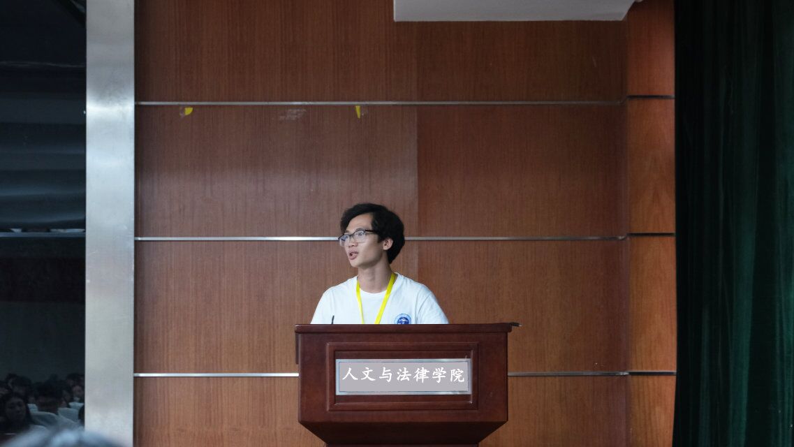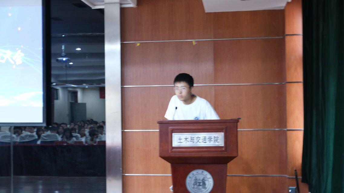 大会伊始,第十六届学生会主席任镇鹏学长发表了精彩讲话,他结合了自己在学生会两年的经验,强调了“独立思考、团结合作”的重要性。
