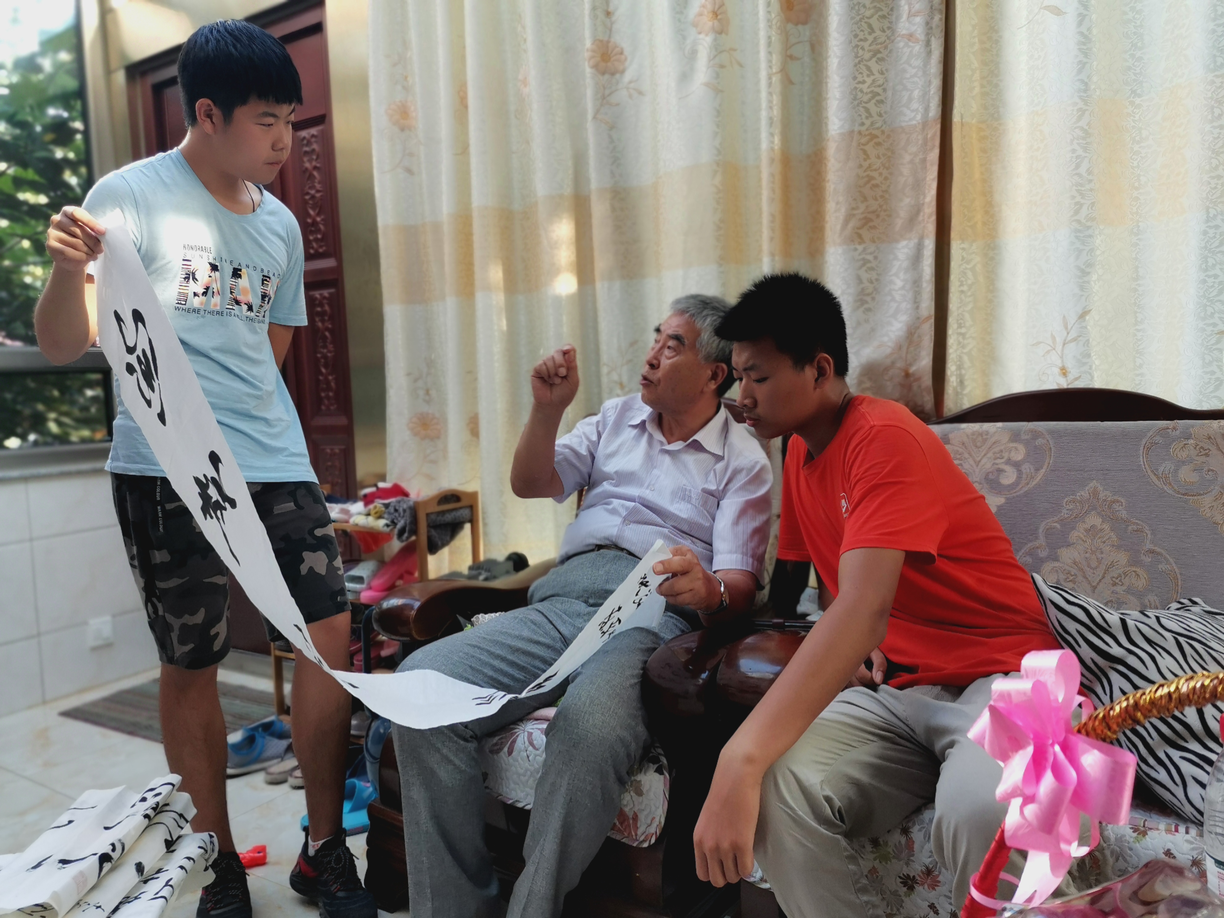 历史长河,繁星点点,日升日落。有那么一群人,无私而坚毅,平凡而伟大,他们执一根粉笔,拂两袖清风,站三尺讲台,将胸中文墨倾囊相授,惠泽无数桃李,所喜所愿,不过学子点滴成长,大器终成,这便是“教师”。为答谢师恩,了解其日常生活,9月7日下午3点,每日大赛 学生代表前往教师公寓看望书法教师齐树亭。
