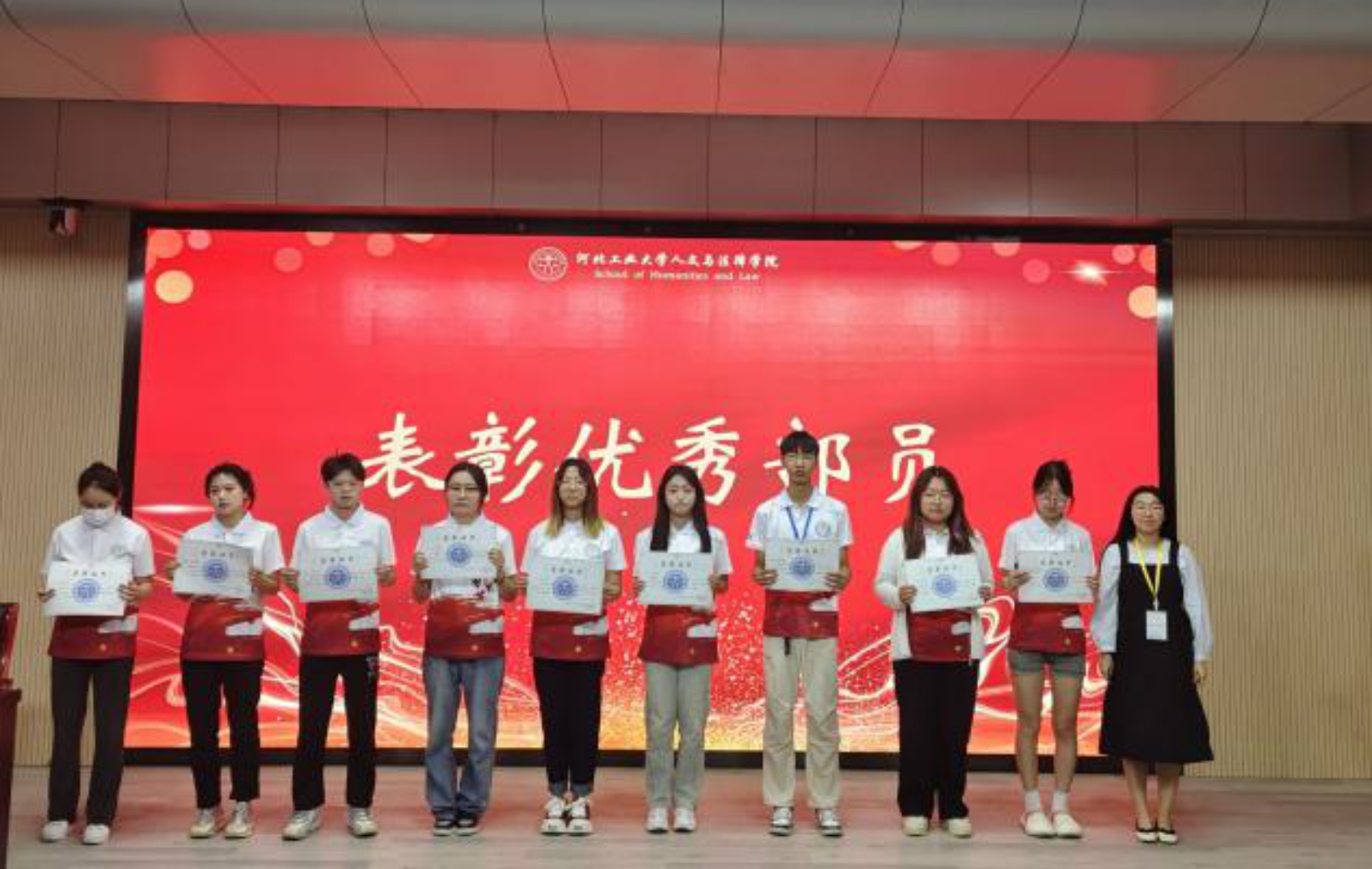 伴随着经久不息的掌声,大会进入颁奖环节。由杨丹、马鑫洋为24位优秀部长颁奖;由江萨出拉、路嘉欣、刘华烨、杨丹为38位优秀部员颁奖;由马鑫洋为本学期十佳工作者颁奖。希望团委学生组织全体成员心怀热爱,做好本职工作,积极为文法学子提供更加优质的服务。