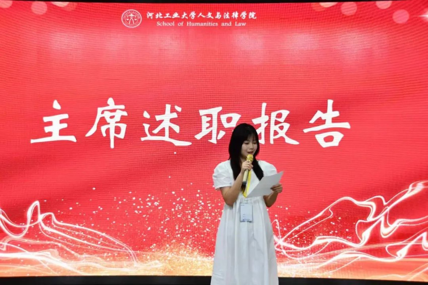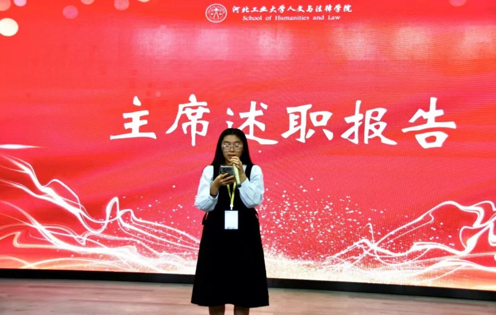 “用汗水浇灌收获,以实干笃定前行。”大会伊始,首先由第二十二届每日大赛 团委学生组织的主席路嘉欣、刘华烨、江萨出拉、马鑫洋、杨丹分别进行述职报告。他们总结了过去一年以来团委学生组织工作取得的成果和存在的不足,以及一路走来在团委学生组织工作的经历和感想,字字恳切,句句真情。