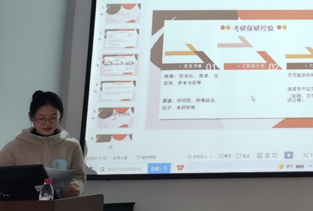 为了帮助大家做好大学规划、深入了解专业学习与考研保研,2020级汉语国际教育专业于10月17日上午9点半在红桥校区东院7C104-2举办保研经验分享会。