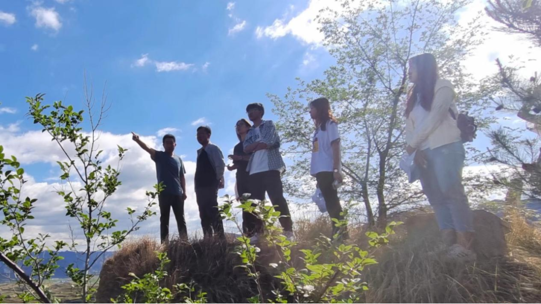 站在山上环视,当年八路军战士坚守阵地的画面重现在实践队员们的面前。
