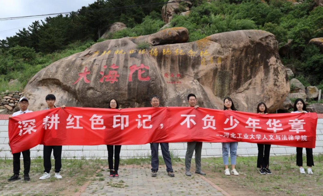 离开南梁战役纪念碑,实践队乘车来到了大海陀山。进入大海陀,映入眼帘的是一块经历岁月磨洗的苍劲巨石,上面刻着聂荣臻元帅题写的“平北抗日根据地纪念地”和原冀热察军区司令员段苏权题写的“大海陀”。巨石诉说着华北抗日战争的那段战火燃烧的岁月,站在石前,先烈们奋勇杀敌的热血呐喊依旧在耳边回响,久久不曾散去。
