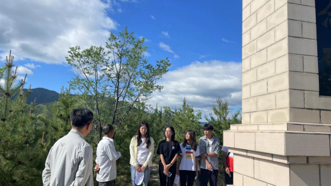 实践队员们首先来到了赤城县南梁村,并于上午八点二十到达了纪念碑石丘下。南梁村原村书记高书记,引领队员们前往纪念碑,通往石丘顶端的小路两侧都是苍劲茂密的松树,也可见其他拜访者留下的鲜花。来到纪念碑脚下,高书记为我们讲述了南梁战役的过往,此战役是由日军偷袭我军分区指挥部而引起,八路军奋起反击,攻守结合,甚至发起了冲锋,最终不仅保卫了根据地,还将来犯日军、伪军近乎全歼,此战役也成为龙关地区战役的转折点。在此之后,日军无力再战,龟缩于县城,直至抗日战争胜利。