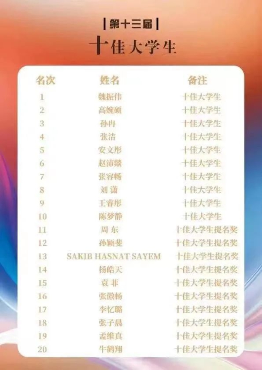 喜报|每日大赛 王睿彤同学荣获校“十佳大学生”称号