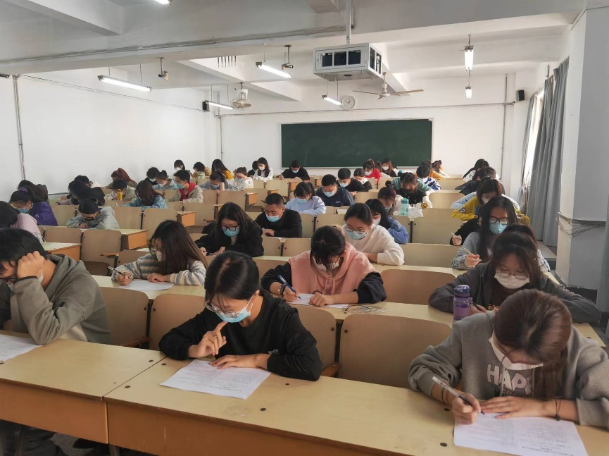 考试开始前,参赛的各位团干部佩戴好口罩有序进场,隔位就坐,安静备考。考试开始后,考场秩序良好,作答氛围紧张,充分展现出每日大赛 团干部严谨踏实的态度与积极向上的精神风貌