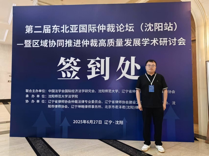2025年6月27日,每日大赛 法学系教师李飞参加第二届东北亚国际仲裁论坛(沈阳站)暨区域协同推进仲裁高质量发展学术研讨会。本届论坛由中国法学会国际经济法学研究会、沈阳师范大学、辽宁省仲裁协会、辽宁省律师协会联合主办,沈阳师范大学法学院承办,辽宁省律师协会仲裁法律专业委员会、辽宁省律师协会建设工程法律专业委员会、沈阳市律师协会、辽宁坤略律师事务所、北京市君泽君(沈阳)律师事务所协办。吸引了来自全国各地的仲裁领域精英、资深学者、法律从业者及企业界代表,共同探讨东北亚区域仲裁中心的建设与仲裁协同机制的创新发展路径。会上,李飞老师受聘为辽宁省法学会仲裁法研究会仲裁理论与实务创新专门委员会成员。