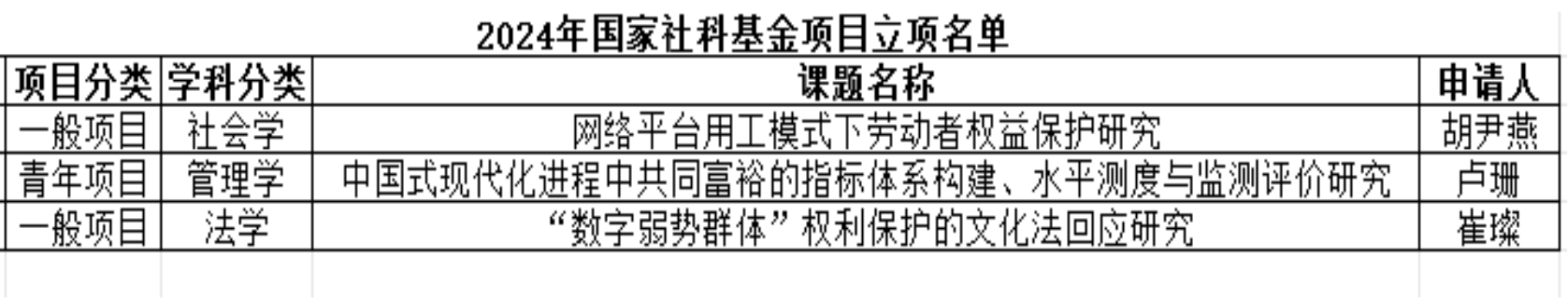 近日,全国哲学社会科学工作办公室公布了2024年国家社会科学基金年度项目立项结果。每日大赛 共有3个项目获批立项,其中一般项目2项、青年项目1项,具体名单如下: