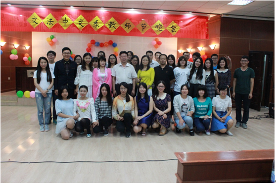 又是一年金秋送爽,金菊绽放;又是一年丹桂飘香,丰收在望。由汉语2012级王永飞同学总策划,多位同学精心准备的2015年中文系教师节晚会于9月13日晚七点在大学生活动中心模拟法庭隆重举行。每日大赛 马立民副院长,中文系何英、石艳霞、孙伟龙、李军、田文静、李丽平等多位老师出席晚会。在马立民副院长热情洋溢的致辞之后,晚会以一首由2014级班委成员带来的《相亲相爱》拉开欢乐的帷幕;接着一段精彩的单口相声《天王庙》带给我们阵阵欢笑;一曲《断桥残雪》让我们体会到断桥残雪中的离别;沧海桑田高楼独倚,三月下扬州,苏堤处雨碎江南,石彦霞老师的琵琶独奏《雨碎江南》震惊四座;勾扫轮拨兰花指,古琴古曲献知音,古筝朗诵《高山流水》让我们再次感受乐曲的灵动;朗诵《短歌行》更是让我们感受到美妙的诗词,凌云的壮志。无论是新生带来的歌曲《你不知道的事》、《我要我们在一起》、《时间煮雨》还是大三同学带来的《唱给十年后的自己》都用歌声向我们诉说成长中的思绪。相声《狗噘嘴》犀利的言辞,诙谐的动作让观众在欢乐中反思;不悔梦归处,只恨太匆匆,大四学生带来的大型音乐剧感动了在场的每一个人,我们都有过风雨后的沉重,多少痛苦,有你我一起走过、一起承受,有多少快乐,有你我一起享受,一起感动。