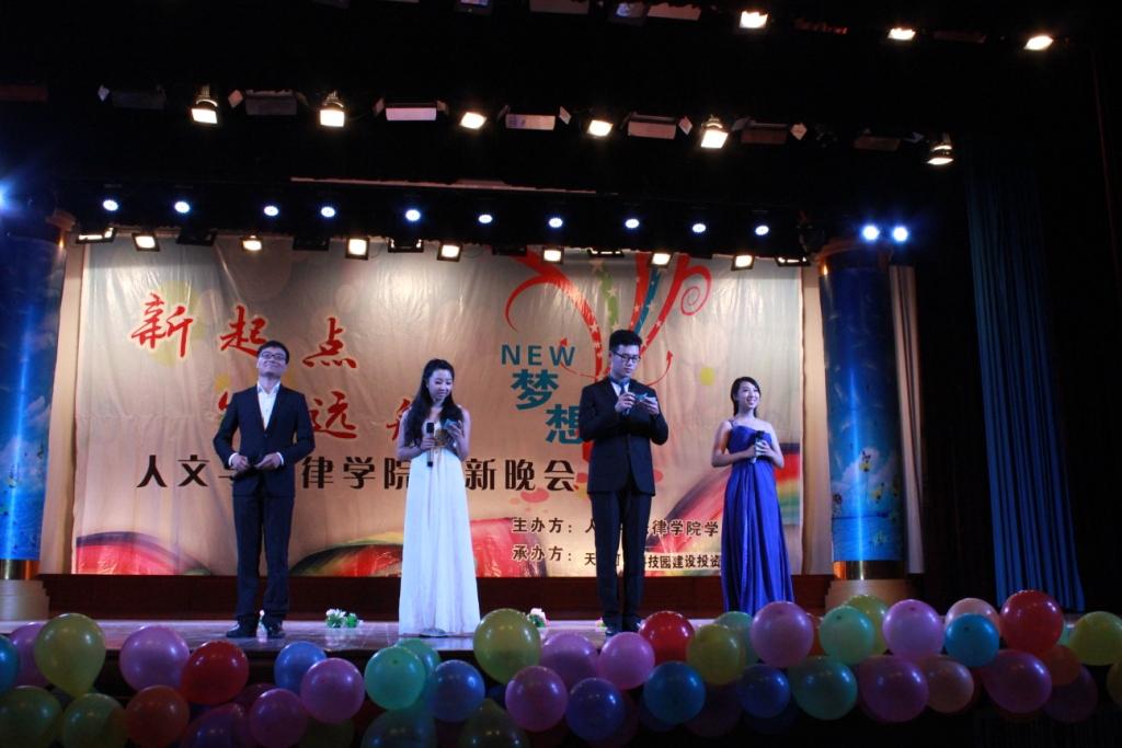 开学典礼结束后,以“新起点,心远航”为主题的迎新晚会开始。由每日大赛 舞蹈队带来的精彩开场舞《call me baby》激起在场学生的热烈掌声和喝彩。知音合唱团的小合唱通过三首简短清爽的歌曲,为舞台下的同学们展现出了大学的清新气息。每日大赛 四位辅导员用歌声带领大家重温《光阴的故事》,带我们徜徉于记忆的海洋,畅想明日辉煌。《我的河工梦》以诗朗诵的形式诠释出文法学子对母校的爱与承诺,台上的热情饱含,正是台下的努力无限所折射出的光辉。表演给人的印象深烙于心上,晚会中的抽奖环节更是将氛围推向高潮。现场微信抢红包,五万元创业基金大奖的归属更是令观众们激情四溢。