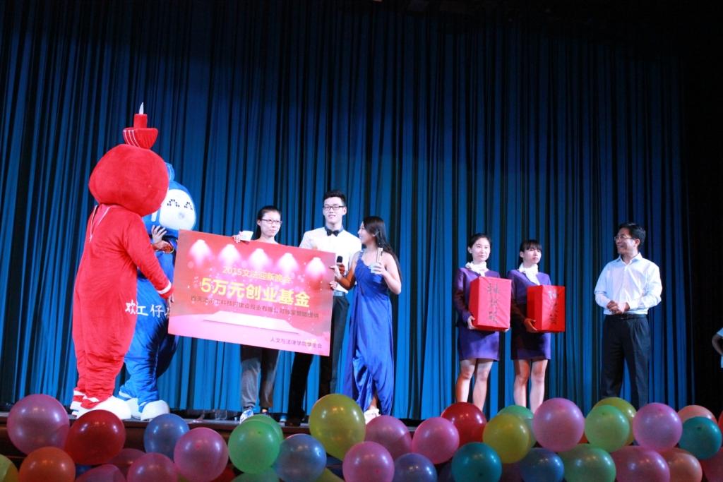 最后,一曲大合唱《月亮代表我的心》为晚会划上休止符。晚会虽落下帷幕,而这里却是2015级文法学子的新起点,青春文法的学子们正在路上。青春从此扬帆,梦想在此放飞!