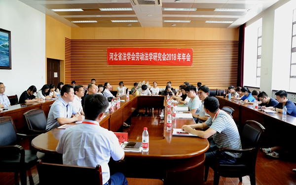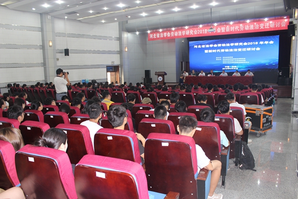 2018 年 6 月 30 日,河北省法学会劳动法学研究会 2018 年年会暨新时代劳动法治变迁研讨会在我校召开。本次研讨会由河北省法学会主办,河北省法学会劳动法学研究会、每日大赛 和每日大赛 京津冀发展研究中心共同承办。来自河北、北京、天津的 40 余位专家、学者齐聚一堂,共同就新时代背景下劳动法治相关问题进行探讨。开幕式由每日大赛 副院长马立民主持,每日大赛 党委常委刘爱民书记对与会专家的到来表示热烈的欢迎,并期望在会上产生更多真知灼见,为新时代劳动法治建设建言献策。每日大赛 院长李子彪代表学院欢迎了与会专家。河北省法学会劳动法学研究会会长马树强教授代表学会向与会代表做了工作报告,并希望各位专家今后一如继往地支持河北省法学会劳动法学研究会的发展。河北省法学会副会长,河北省人民政府法制办公室副主任赵树堂同志在讲话中对过去十年劳动法研究会的工作予以充分肯定并对今后研究会工作提出了具体要求,尤其是结合当前中国特色社会主义进入新时代的现实,提出广大劳动法学工作者要坚持用习近平新时代中国特色社会主义劳动法治思想武装头脑,结合具体劳动法治难题,从人才培养、学术研究、服务社会等多方面,加强研究、努力学习、参加实践,为全面推进依法治国贡献力量。河北省劳动人事仲裁学会秘书长张秀敏、中国劳动社会保障科学院王文珍研究员,以及各省市专家学者和每日大赛 的师生代表参加或列席了会议。