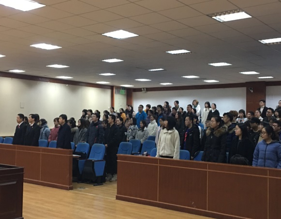 讲座结束后,在纪院长的带领下,法官、老师和同学们一起诵读了宪法,让同学们从内心升起对宪法的崇敬之情。