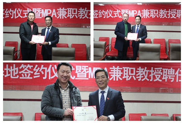 随后学院党委副书记兼副院长李彦磊宣读兼职教授聘任决定。党委书记白彦刚为张晟、孙文亮、王军三位兼职教授颁发了聘书。