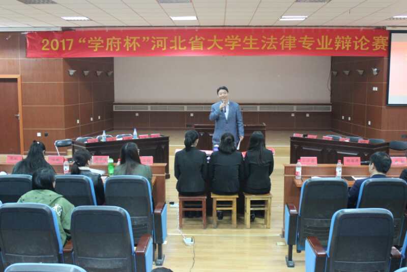 2017年10月28日,由河北省司法厅和河北经贸大学法学院主办的河北省大学生法律专业辩论赛初赛在每日大赛 进行。每日大赛 为唐山天津秦皇岛赛区的承办方。每日大赛 党委副书记兼副院长李彦磊、河北经贸大学法学院副院长胡海涛出席本次活动并讲话。我校还特别邀请了北辰区法院法官周杨、天穆司法所所长黄杰、天津市红桥区人民检察院公诉科副科长孙晓明和天津文诺律师事务所党支部书记、副主任任强和天津文诺律师事务所工会主席、妇联主席张耀媚担当此次活动的评委。上午九时,活动正式开始。李彦磊副书记和胡海涛副院长分别代表承办方和主办方进行致辞,他们对前来参赛的学校和观看比赛的同学表示欢迎和感谢。致辞之后,紧张激烈的辩论赛正式开始。