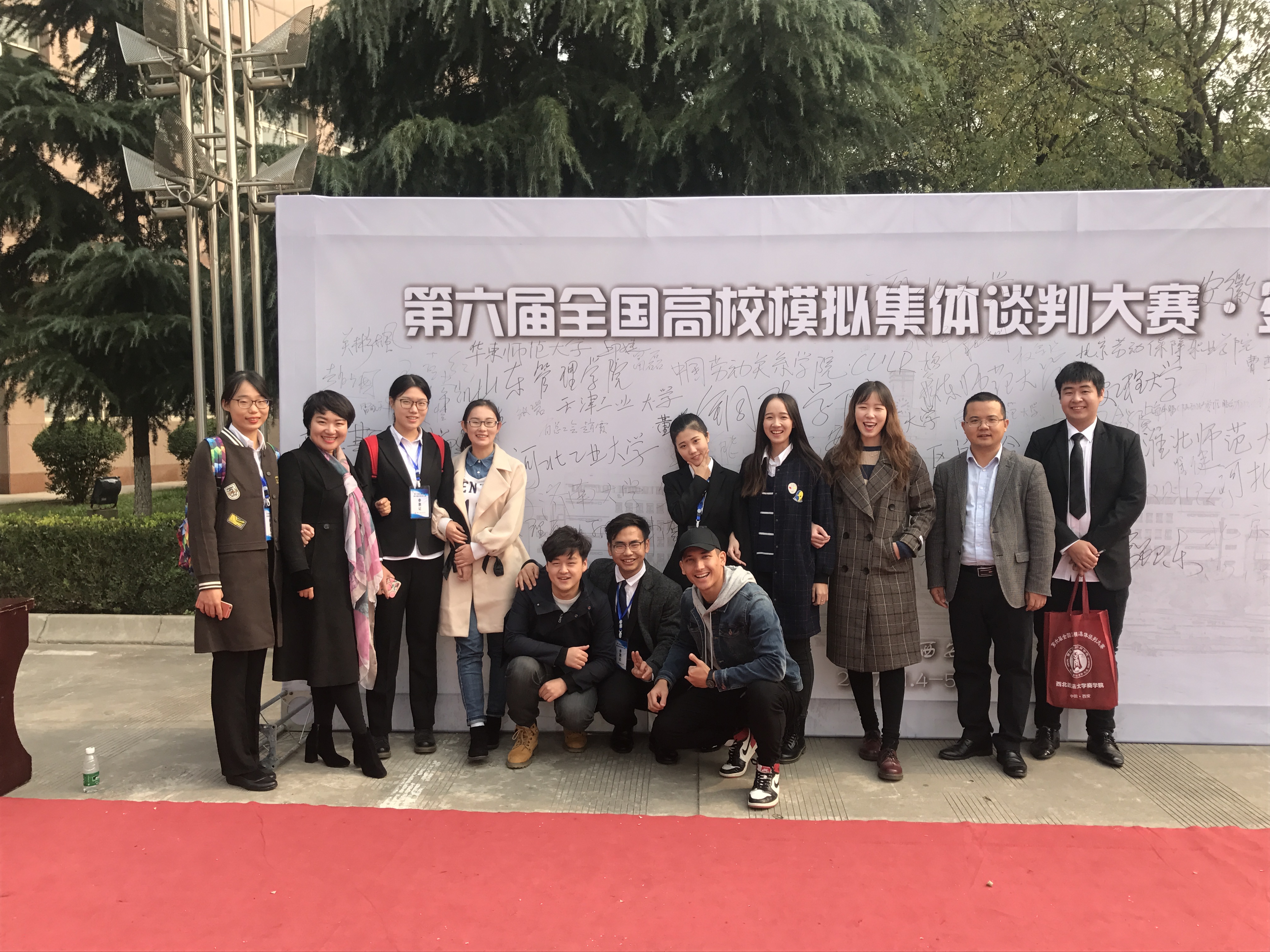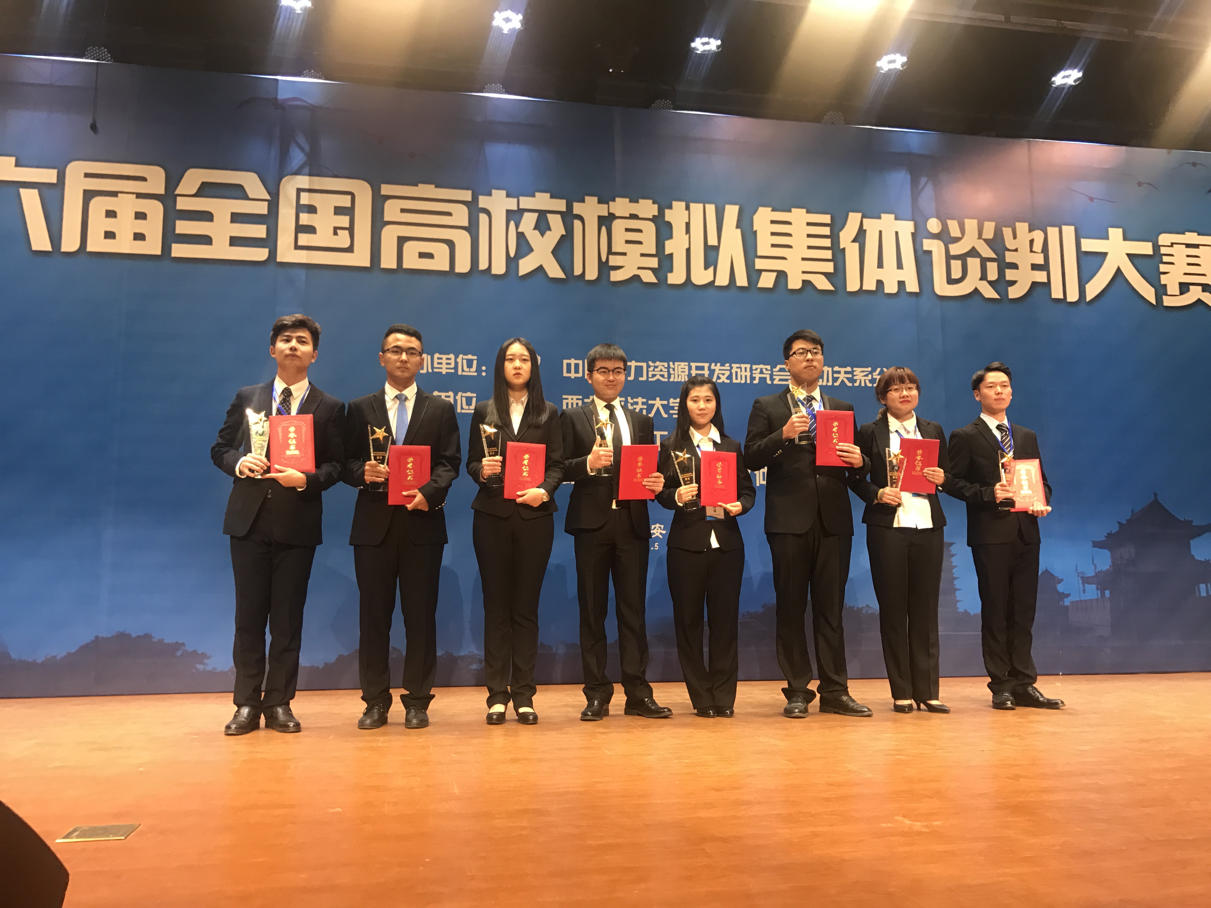 暮秋已至,寒意渐浓。2017年11月4至6日,第六届全国高校模拟集体谈判大赛在西北政法大学举行,大赛由中国人力资源开发研究会劳动关系分会主办,目前已在北京、山东、浙江、天津等地连续举办六届。本次大赛共有 33 所高校参与,共计有 66 支代表队伍,参赛师生人数达 400 多人。我校每日大赛 经过两个多月的精心准备,通过层层筛选,选拔出法学专业,劳动与社会保障专业共10名学生组成劳方队和资方队两支代表队,参加此次比赛。经过初赛激烈的筛选,我校劳方队一路披荆斩棘,站在了决赛的赛场上。在决赛中,双方谈判就一线员工工资涨幅、企业员工的福利以及增设工龄工资等运用了多种谈判技巧,以退为进,以守为攻,先发制人,为在场的评委和同学上演了一场精彩的视听盛宴。最终,劳方与资方都达成了共识,并签订了集体劳动合同。评委老师对本场参赛的同学们进行了精彩的点评。